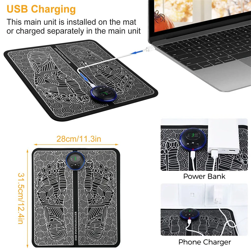 Soothe tired feet and stimulate leg muscles with the EMS Foot Massage Pad. This compact, portable pad uses Electrical Muscle Stimulation (EMS) to promote circulation and relieve soreness after a long day.